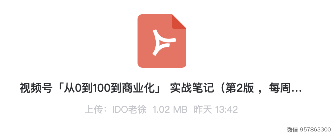 基于此,IDO老徐 ,整理了一份 《视频号从0到1到商业化实战笔记》.pdf