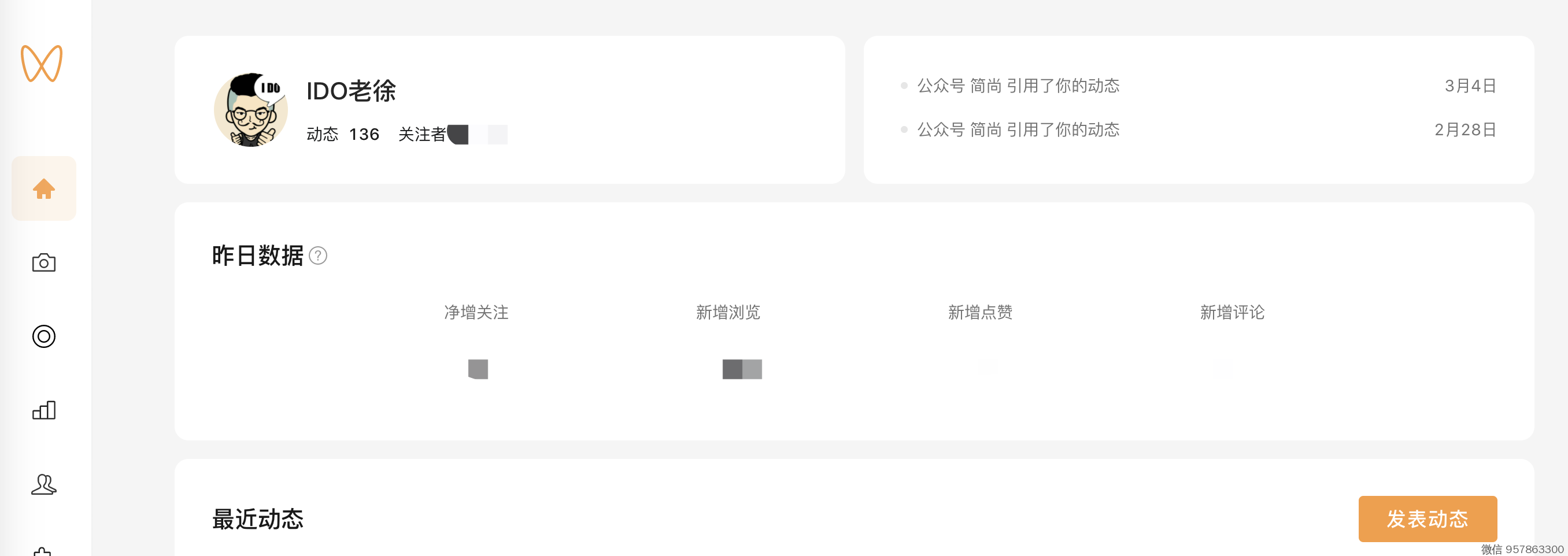 2、登录后,可查看 总关注用户、最近7天的新增关注