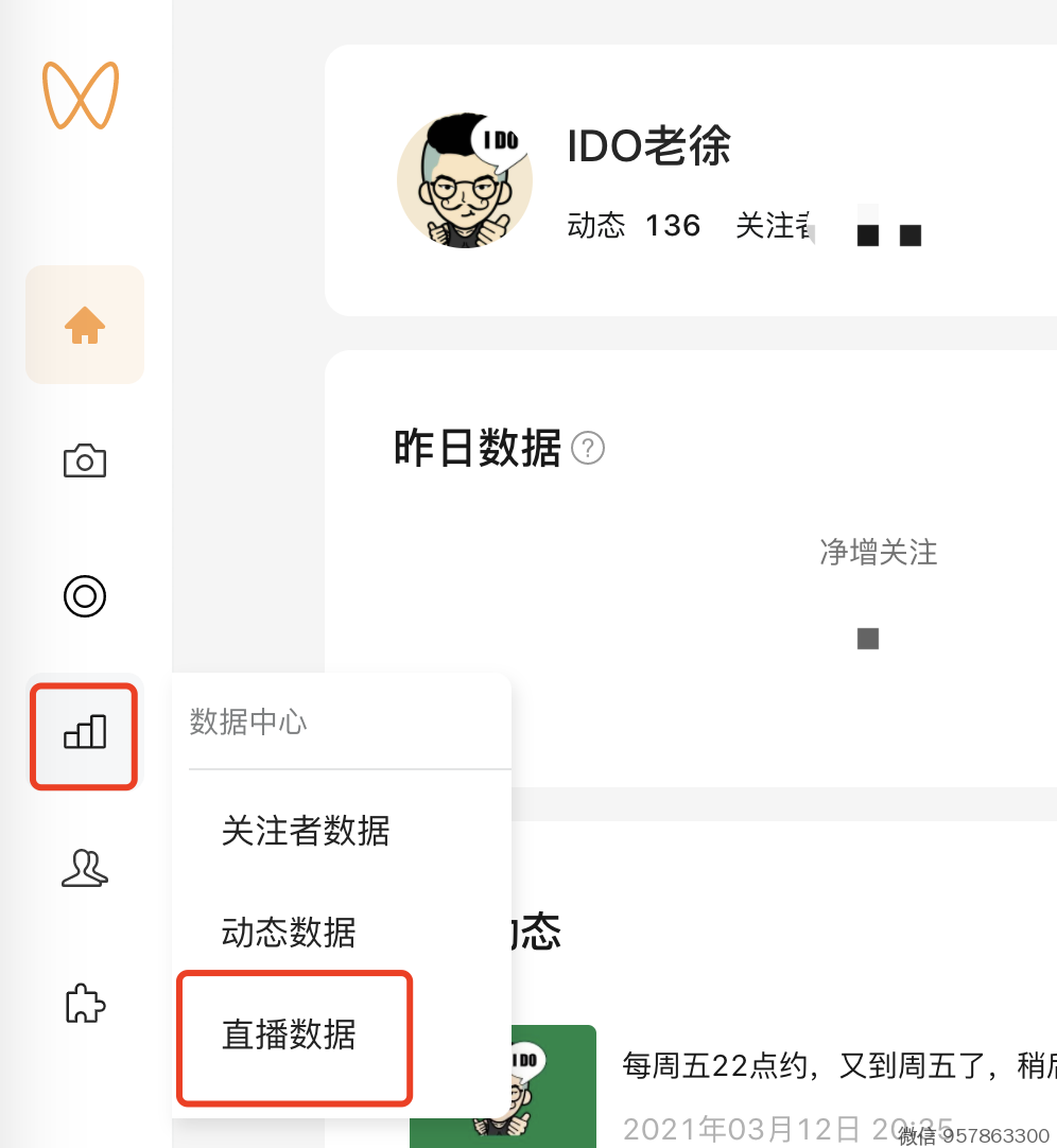 3、找到直播数据,打开