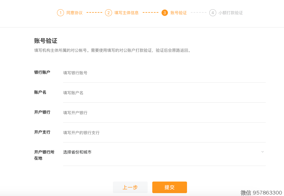 2)账号打款验证(去你的公账,让财务打款这个账号,按这个金额打款)