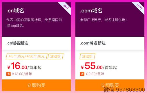 1. 进入阿里云域名购买页面 进入域名购买页面